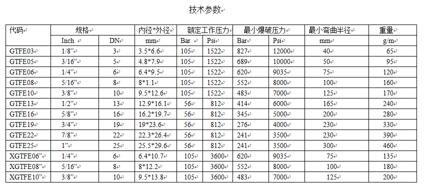 主要规格:外径:2~50mm ;壁厚:0.2~5mm铁氟龙